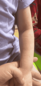 Prvi znakovi su se zapravo pojavili već pri rođenju. Obično ti kažu da se koža “čisti”. Naše patronažne sestre, koje su inače bile divne, nisu točno znale što se događa. Jako rado preporučuju bademovo ulje, koje spada među najčešće iritanse.