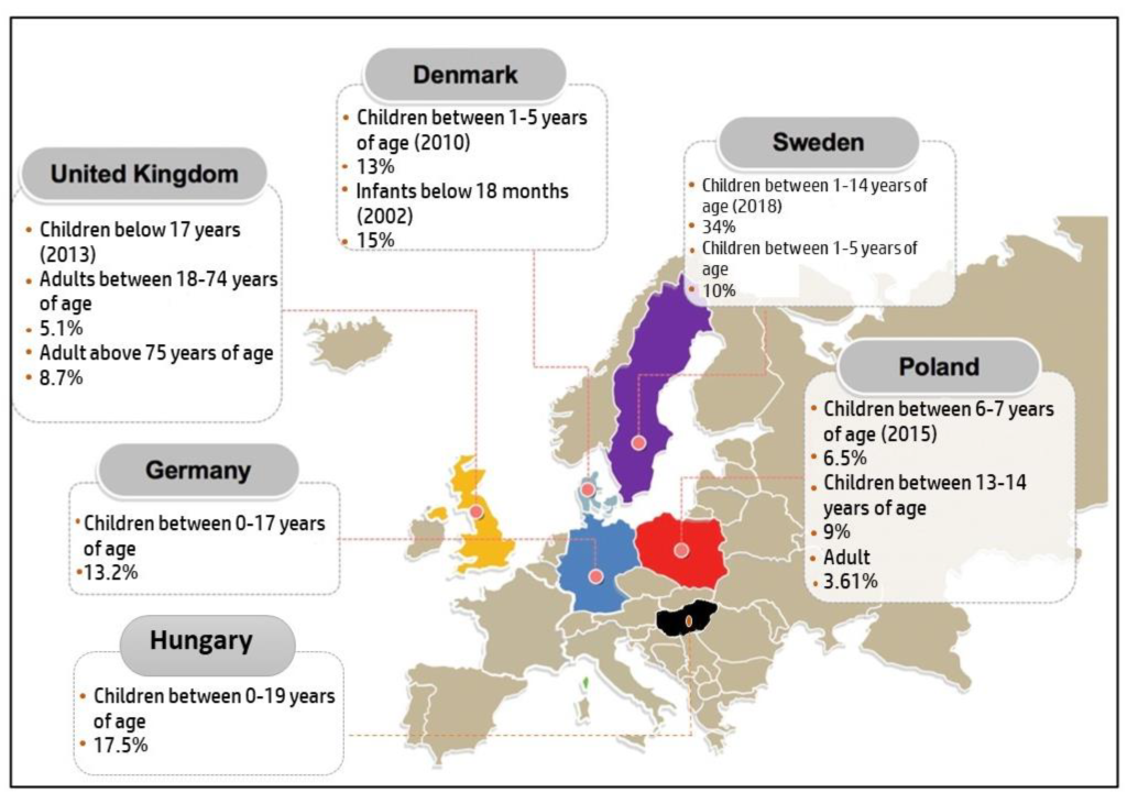 Rasprostranjenost AD-a u Europi. (Vir: mdpi.com)