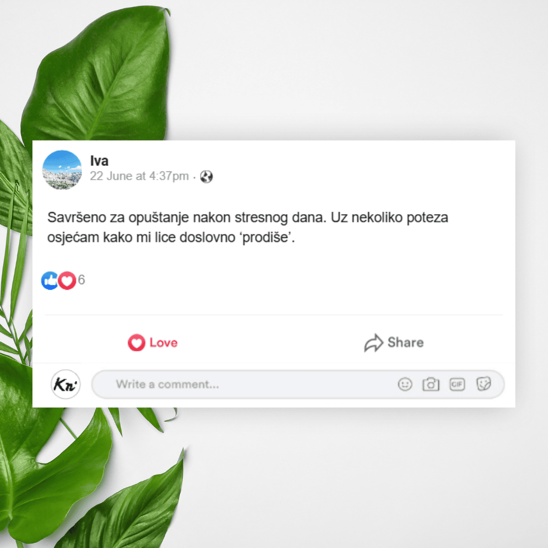 Da, preporučujemo nanošenje nekoliko kapi ulja ili seruma, poput našeg Kn hranjivog uljnog seruma, kako biste omogućili glatku masažu bez povlačenja kože.